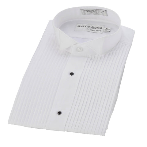 • 65% polyester, 35% cotton shirt with pleated front and black plastic studs